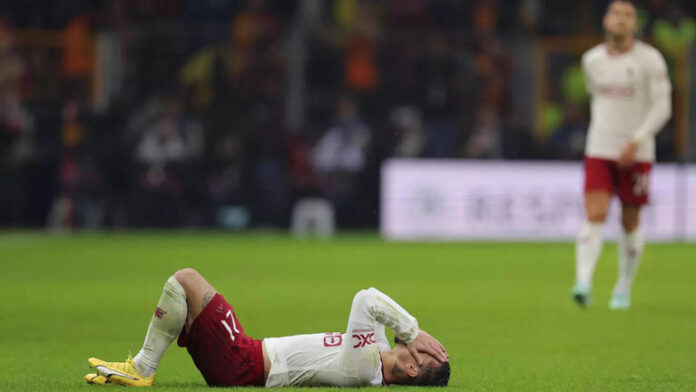 Manchester United are facing elimination from the Champions League in the group stage after squandering a two-goal lead to draw 3-3 with Galatasaray in Istanbul on Wednesday, while Arsenal and PSV Eindhoven secured qualification for the last 16.