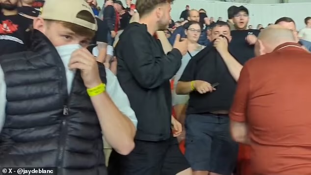“Everyone has been tear-gassed,” one fan posted, showing panicked supporters reacting to the suspected chemical irritant. The reason for the use of force remains unclear, though similar scenes have unfolded in other European fixtures involving English clubs.