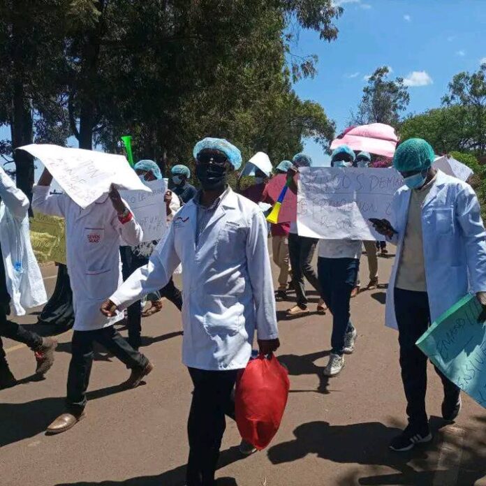 Members of the Kenya Union of Clinical Officers (KUCO) on Wednesday staged protests in Marsabit town, accusing the county administration of reneging on promises and failing to pay salaries for the past three months.