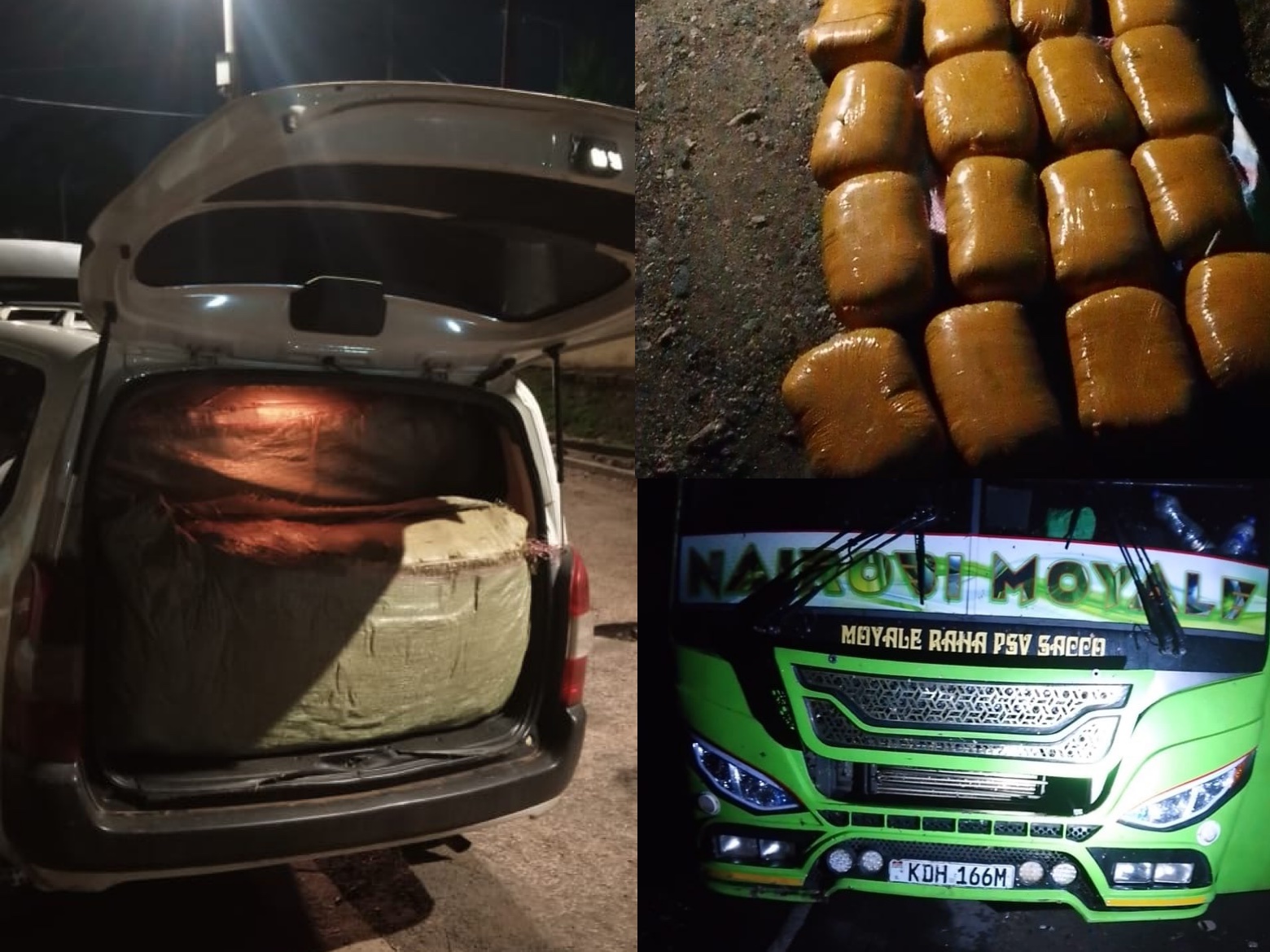 In a second operation, detectives from the Transnational Organized Crimes Unit intercepted a Toyota Probox carrying over 155kg of marijuana in Buruburu.