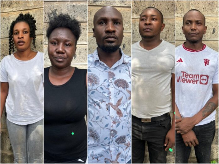 The suspects; Geoffrey Kasamani Chula (Munyaka, Eldoret), Stephen Mokaya Nyangoya (Kitale), Paul Nganga Kariuki (Eldoret-Hawaii), Teresia Muthoni Mwaniki (Eldoret-Kimumu), and Cedela Akoth Oruya (Kisumu)—were apprehended following a series of coordinated investigations into fraudulent withdrawals and float-cleaning scams targeting mobile money shops.