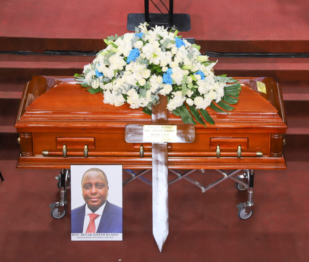 Members of the National Assembly gathered at Ridgeways Baptist Church for a requiem mass in honour of the departed nominated MP Hamisi Denar Tui.