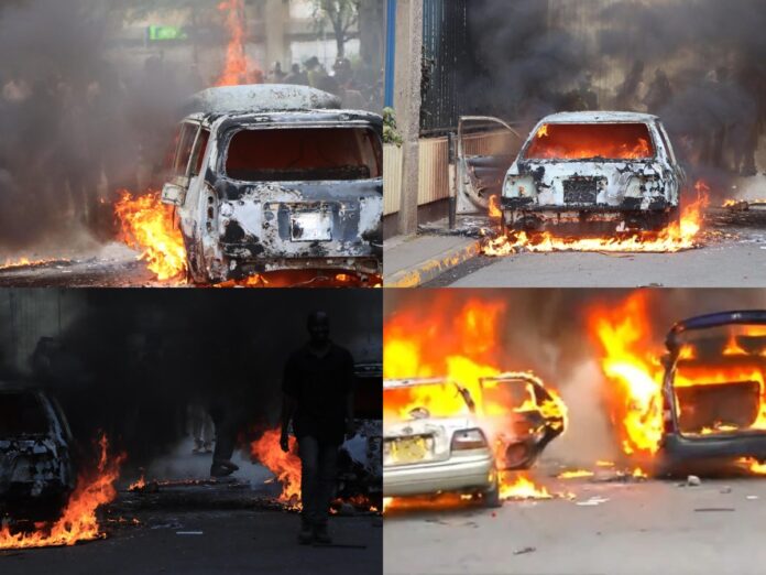 Two vehicles were burnt in Nairobi CBD as protestors took to the streets over the death of Albert Ojwang.
