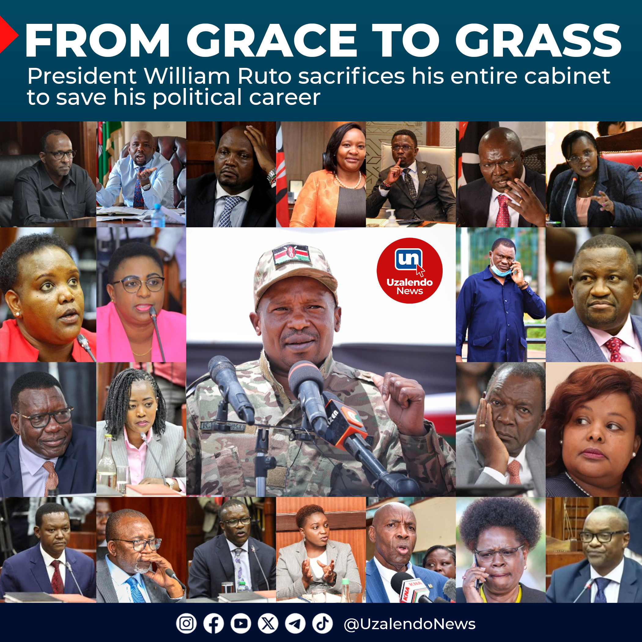 “Upon reflection and listening keenly to what the people of Kenya have said and after a holistic appraisal of the performance of my Cabinet and its achievements and challenges, I have today decided to dismiss with immediate effect all the CSs and AG except the PCS and CS for Foreign Affairs. The office of the DP is not affected in any way,” Ruto announced at a State House press conference in Nairobi.