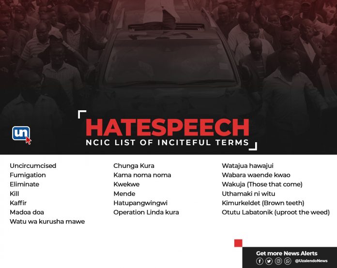 The National Cohesion and Integration Commission (NCIC) has released a list of commonly used terms that are now considered hate speech and may result in legal action if they are used.