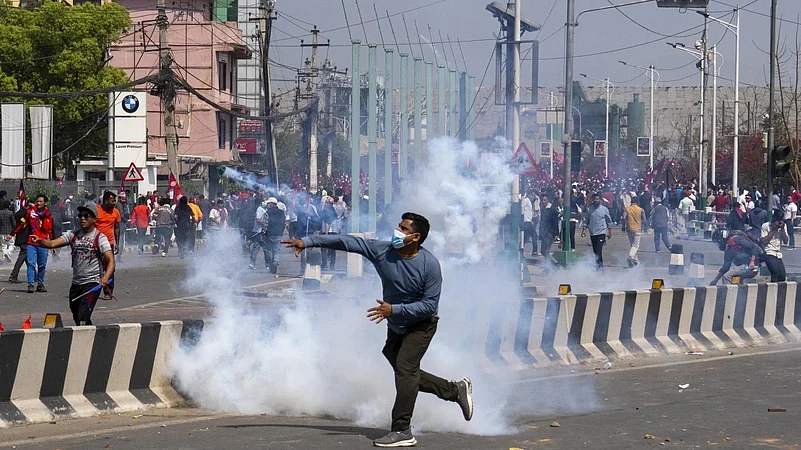 Demonstrators are also calling for the country of 30 million people, wedged between China and India, to become a Hindu state again, a status it lost with the monarchy.