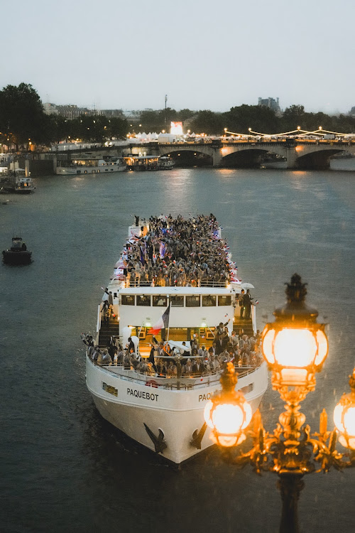 The last two boats to parade – first the US as the next hosts for Los Angeles 2028 and then France – had the largest numbers of athletes on board, while other barges carried several delegations together.