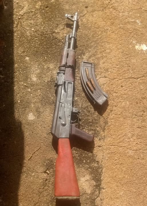 The AK-47 rifle, loaded with a magazine containing three rounds of ammunition, was handed over on Sunday in Kacheturnguny Village, Muruber Sub-Location, Chechan Location.