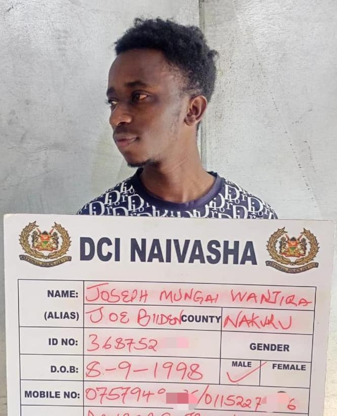 In an update via the X platform on Wednesday, June 5, Joseph Mungai Wanjira was flushed out of his hideout within Naivasha town at 1 pm.