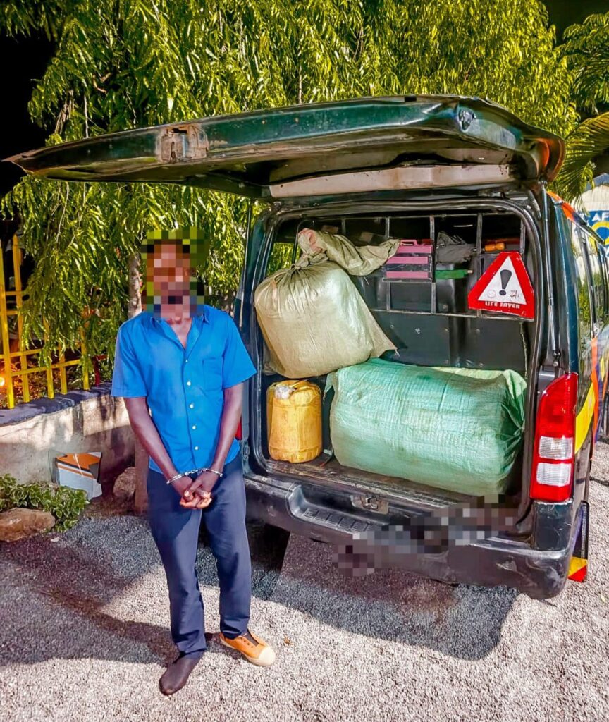 During a routine patrol within the city, officers intercepted a public service vehicle and conducted a search, leading to the discovery of two sacks of bhang concealed in the vehicle’s boot.