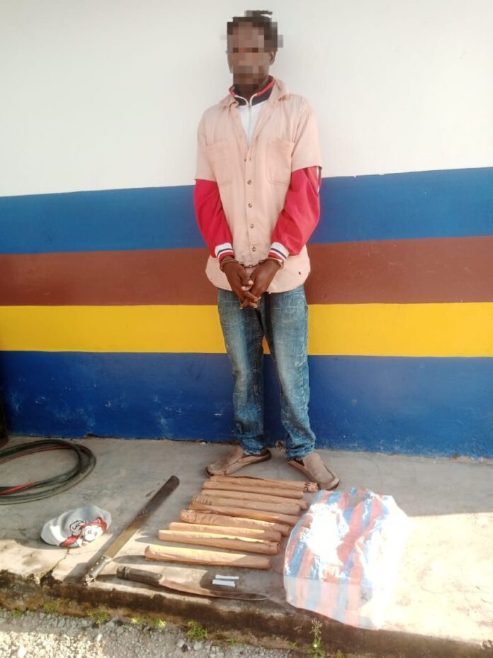 According to a police report, officers from Mariakani Police Station, while on patrol on October 11, 2025, acted on credible intelligence and apprehended the suspect, who was found in possession of 12 rolls of a substance suspected to be cannabis sativa. The officers also recovered two machetes, classified as offensive weapons, during the arrest.