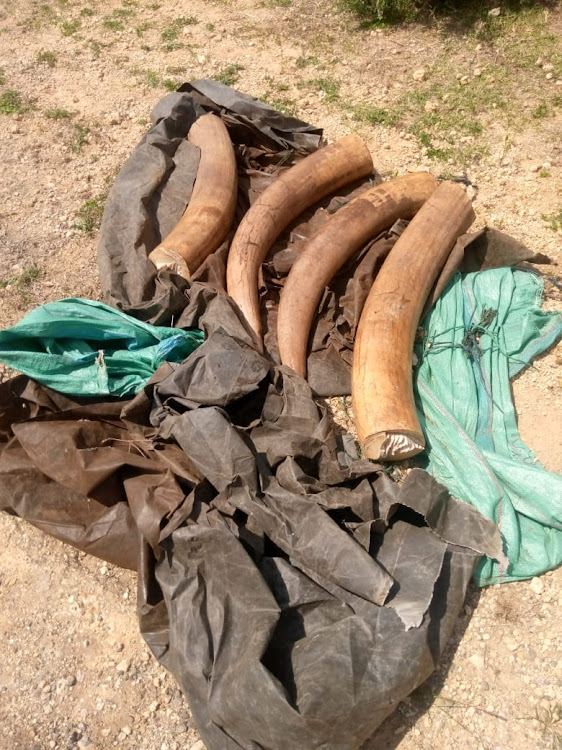 Police stated the suspects were hiding the tusks in a bush while waiting for a potential customer when they were nabbed.