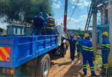Police officers on patrol at Billow Dam, Biamthow SOG Officers have recovered a cache of weapons while tracing foot prints on May 22, 2023.