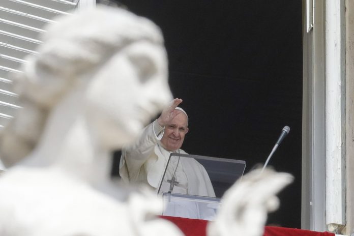VATICAN CITY — Pope Francis says he is happy to be back greeting the faithful in St. Peter’s Square for his traditional Sunday noon blessing after weeks of lockdown measures.