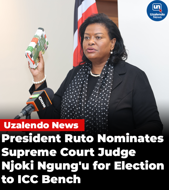 President William Ruto has nominated Njoki Ndung’u, a judge of the Supreme Court of Kenya, for election to the bench of the International Criminal Court (ICC).