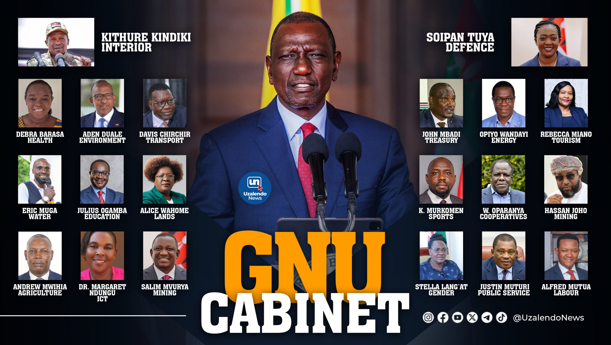 * Davis Chirchir as Roads and Transport Cabinet Secretary