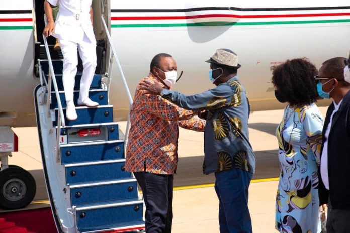 President Uhuru Kenyatta arrived in Kisumu on Sunday, May 30, for a three-day tour of the county. The president was received by ODM leader Raila Odinga, who was accompanied by Governor Anyang Nyong’o, alongside other county leaders.