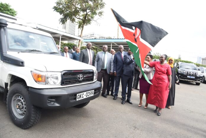 The Ministry of Health CS Nakhumicha S. Wafula has handed over a refrigerated Land Cruiser to Samburu County Governor Jonathan Lati Leleliit.