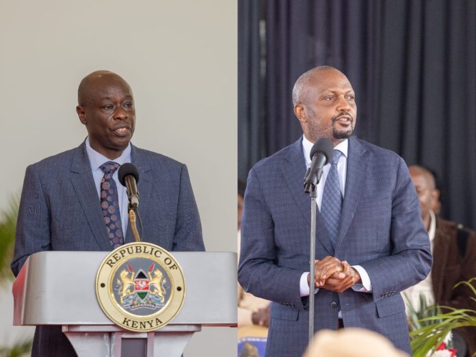 Deputy President Rigathi Gachagua and former Public Service Cabinet Secretary Moses Kuria on Wednesday, August 21 met during the burial of Senator Karungo Wa Thang’wa’s brother Martean Wainaina Thang’wa and sister-in-law Peninnah Wanjiru in Kiambu County.