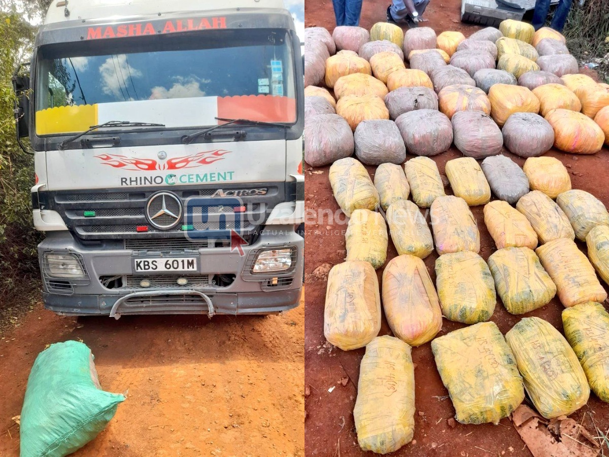 Police had laid an ambush when they flagged down a Nairobi-bound lorry christened Rhino Cement which was carrying the narcotics.