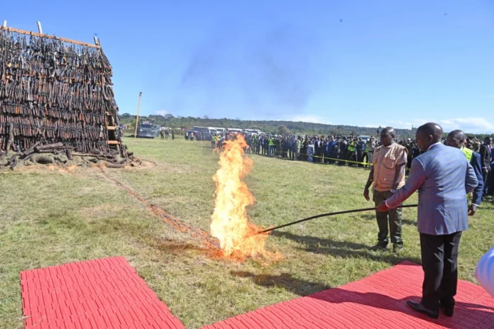 President William Ruto on Friday presided over the destruction of more than 6,000 illegal firearms at the National Police Leadership Academy in Ngong, reaffirming his administration’s commitment to combat the proliferation of small arms and light weapons across the country.