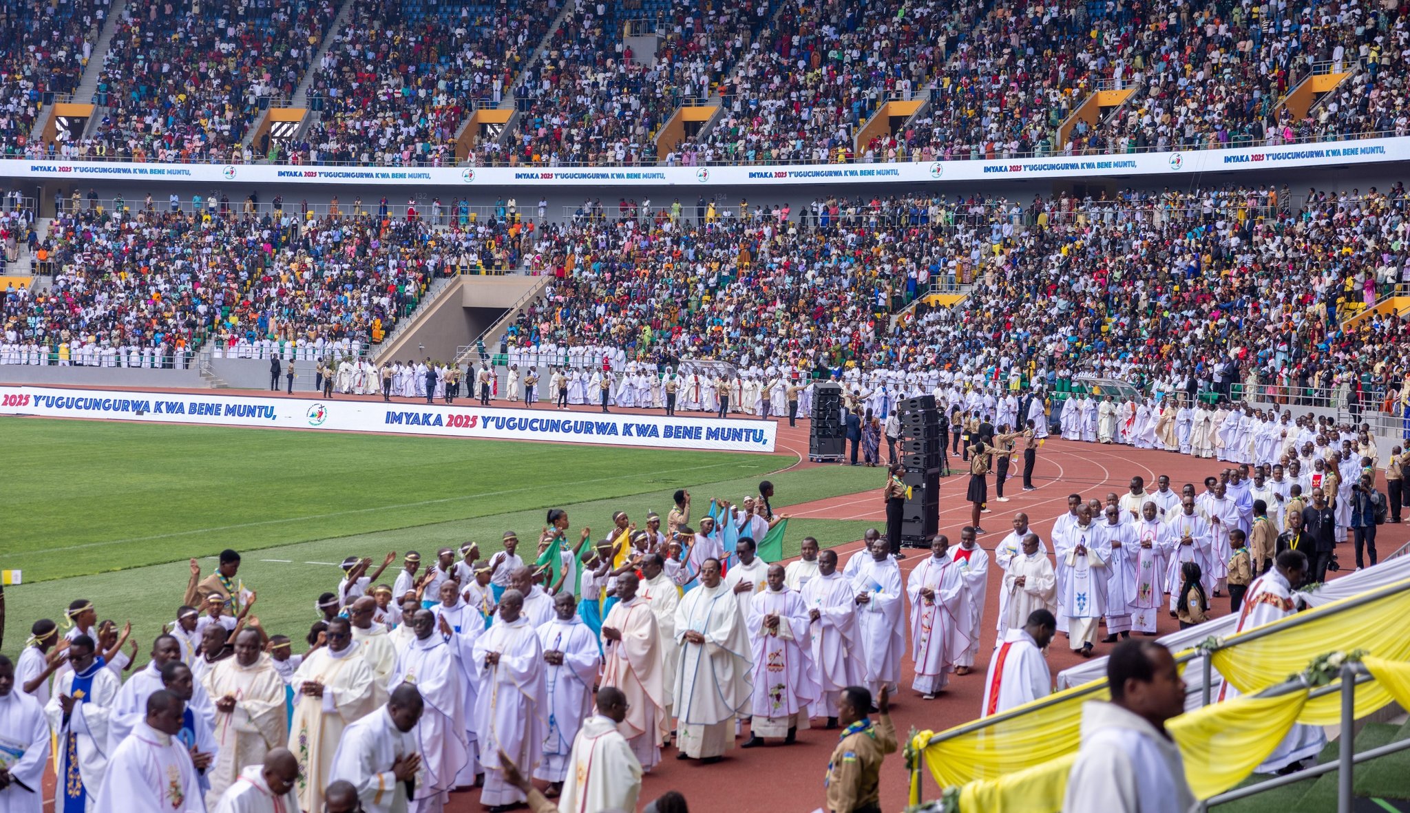 Tens of thousands filled Amahoro Stadium on Saturday as Rwanda’s Catholic Church celebrated 125 years since the first missionaries arrived in 1900, an anniversary that dovetailed with the global 2025 Jubilee Year proclaimed by Pope Leo XIV.