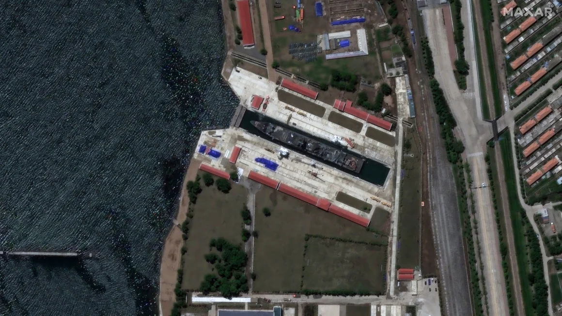 The warship, which was damaged during a botched launch on May 21, appears in satellite imagery taken Sunday by Maxar Technologies. The images show the destroyer in Rajin’s drydock, a facility capable of basic maintenance, though less advanced than North Korea’s primary shipbuilding site in Chongjin, where the failed launch occurred.