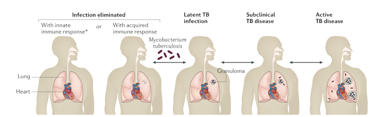 Tuberculosis (TB) is a lung disease caused by the bacterium Mycobacterium tuberculosis. It’s transmitted through air droplets when an infectious person coughs or sneezes. The disease can be treated, but it’s a long process with the drugs that are currently available. It remains a major health problem: globally, about 1.6 million died from it in 2017.