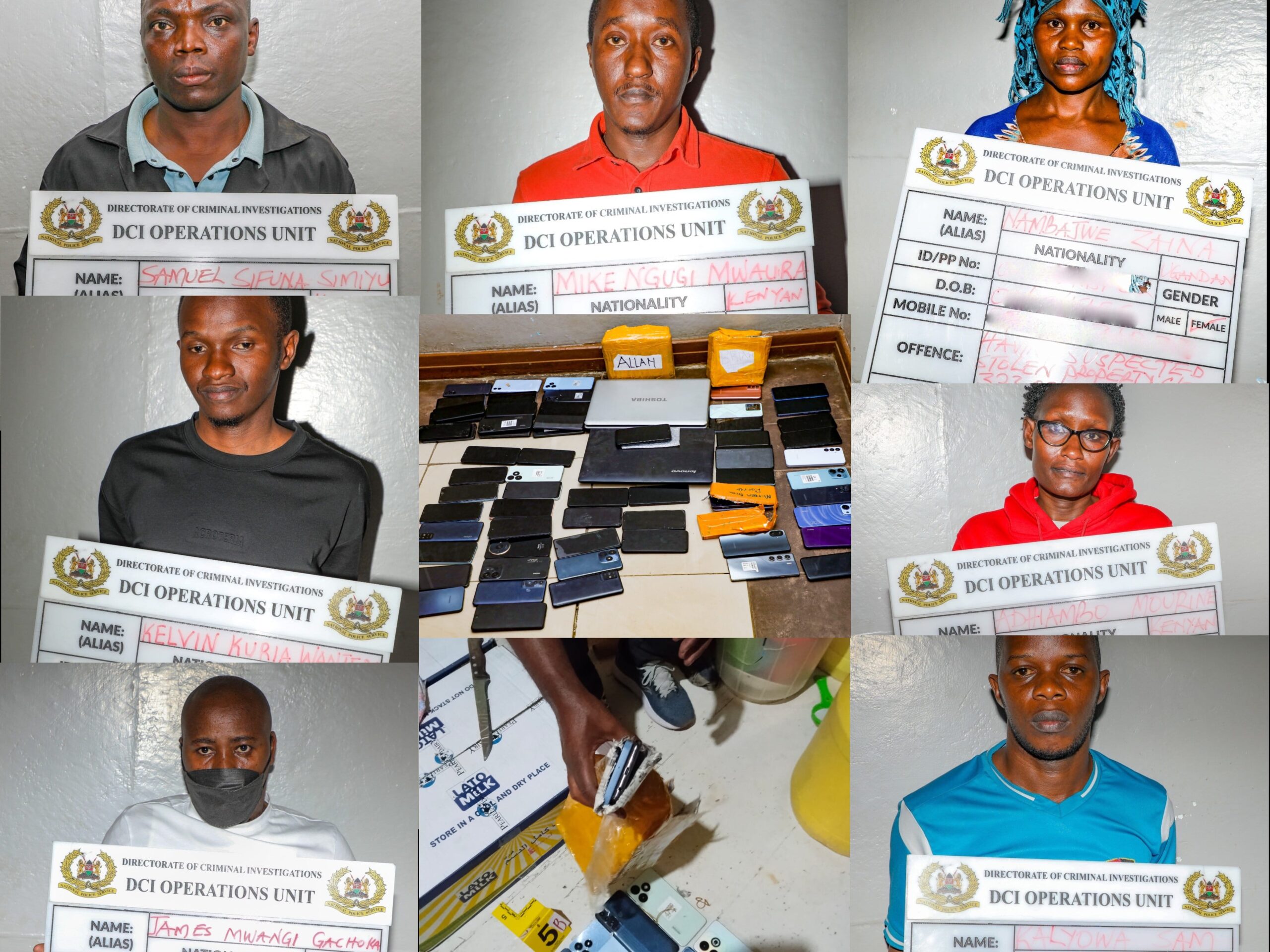 Detectives from the Directorate of Criminal Investigations (DCI) have arrested seven suspects and recovered dozens of stolen electronic devices following an intelligence-led operation targeting a mobile phone theft and resale network operating within Nairobi.