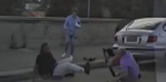 During the melee; the suspects managed escape. The armed cops however did not fire a single shot at the crowded facility.