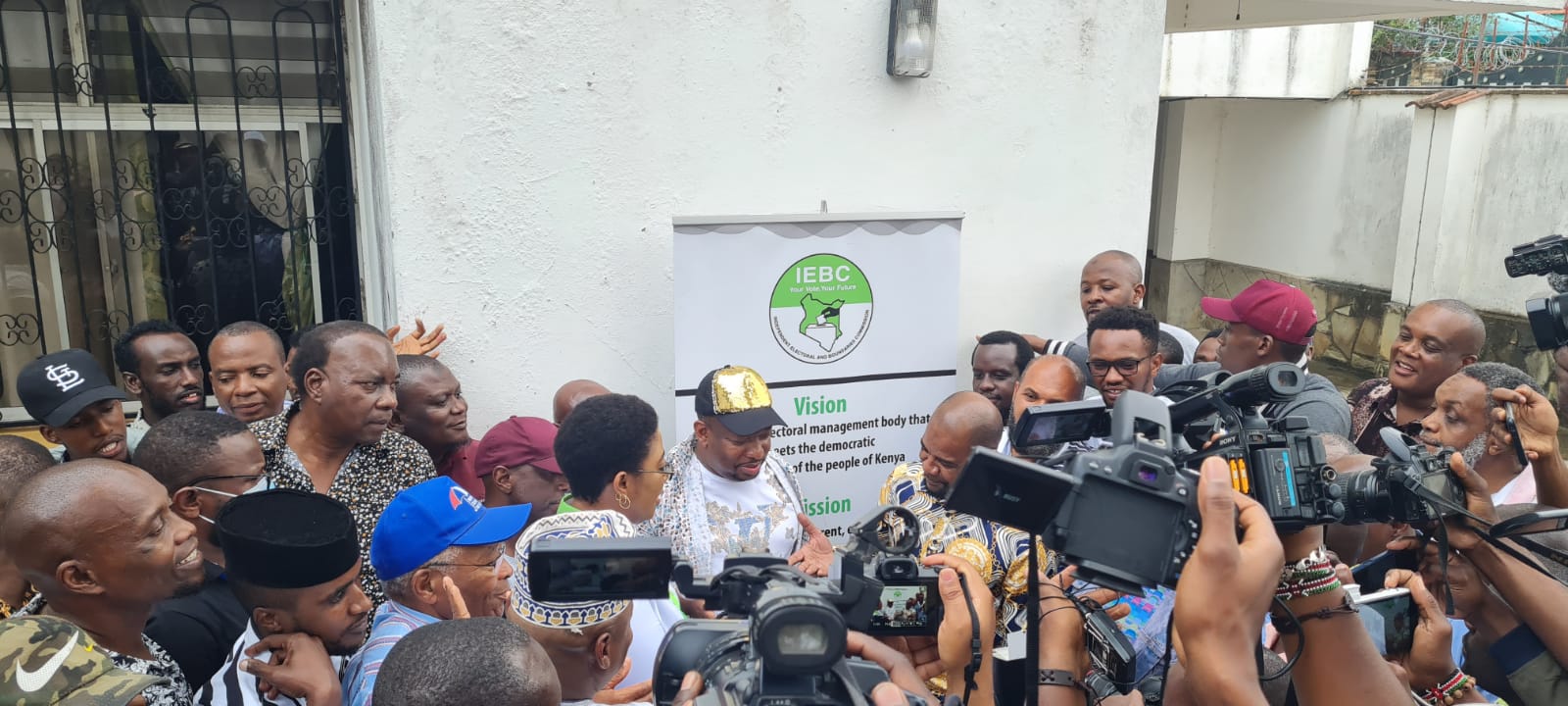 The former Nairobi governor arrived at the IEBC headquarters with his running mate, Kisauni MP Ali Mbogo.