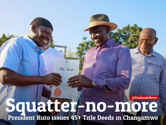 President William Ruto has handed over title deeds to residents of Changamwe, marking a major milestone in the government’s plan to resolve land ownership disputes in the region.