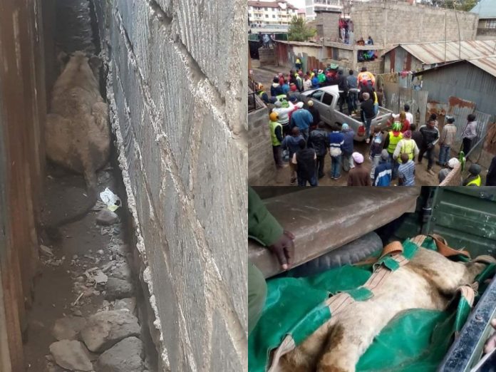 The large cat was discovered hiding between the walls of an apartment near Tuskys in Ongata Rongai.