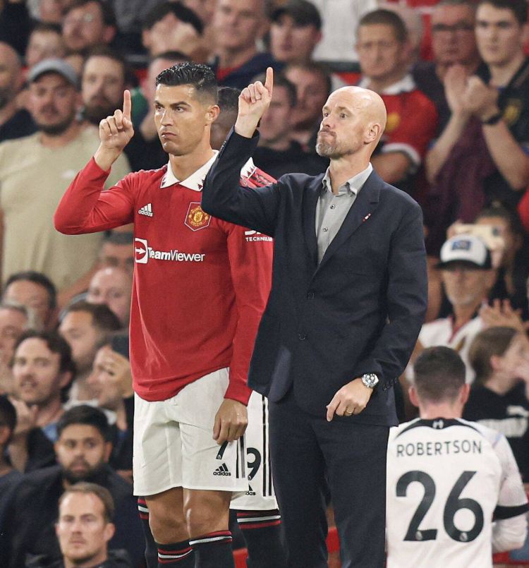 In his first European game outside the Champions League since 2002, when he was a teenager at Sporting Lisbon, Cristiano Ronaldo’s first-half header from Diogo Dalot’s cross was disallowed for offside.