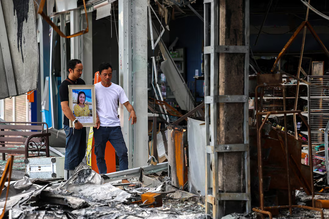 A relative of people who lost their lives when a Cambodian artillery shell slammed into a gas station and destroyed the attached 7-Eleven convenience store, cries after a religious ceremony in Sisaket province, Thailand, July 30, 2025. REUTERS/Athit Perawongmetha