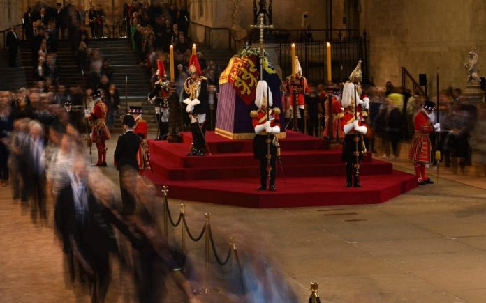 Some even braved the rain and slept on the pavement overnight to secure their position in the queue, which could stretch for 10 miles to gain access to Westminster Hall, the oldest building on the estate that houses parliament where the late queen will lie in state until her funeral on Monday.