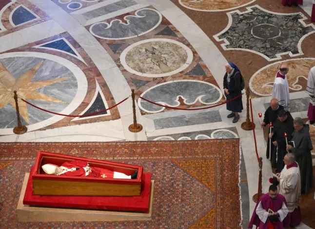 While most mourners were kept at a respectful distance for security reasons, cameras captured 81-year-old Sister Genevieve Jeannigros stepping into the restricted area to pray near the Pope’s coffin.
