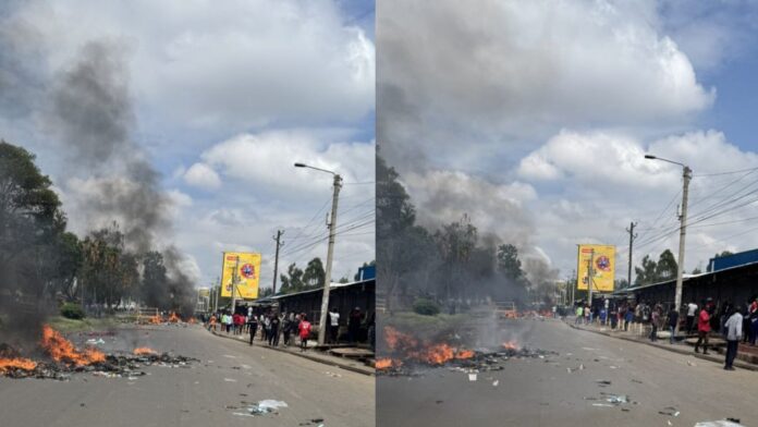 Videos and images captured thick plumes of smoke rising from burning tires and debris near the Likoni Road junction.