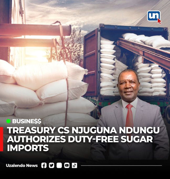 Treasury Cabinet Secretary Njuguna Ndung’u has officially gazetted the duty-free importation of sugar, maize, and rice.