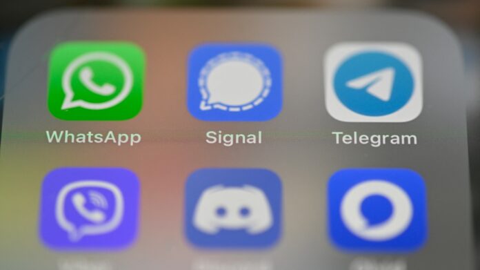 This picture taken on Januray 22, 2021 in Rennes, western France, shows a smartphone screen featuring messaging service applications WhatsApp, Signal, telegram, Viber, Discord and Olvid. (Photo by Damien MEYER / AFP) (Photo by DAMIEN MEYER/AFP via Getty Images)