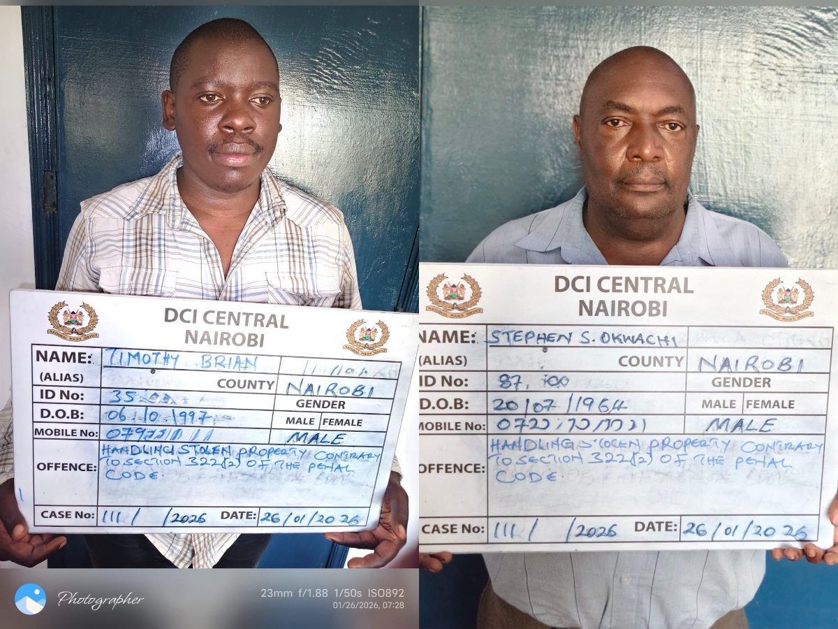 They were arrested and escorted, together with the recovered devices, to Nairobi Central Police Station, where they are being held pending processing and arraignment.