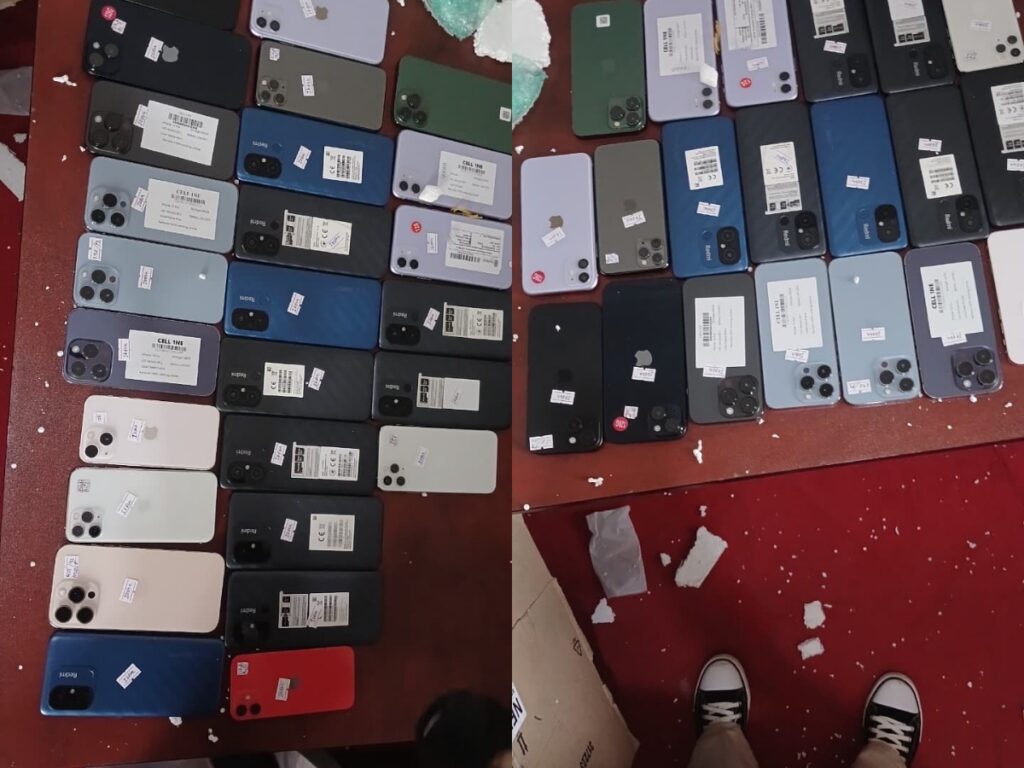 Upon inspection, officers recovered approximately 900 assorted mobile phones believed to have been stolen.