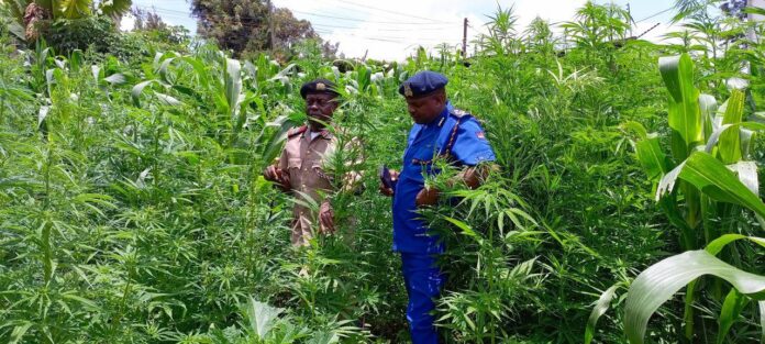 Police have arrested two suspects, David Kinyanjui and his Burundian accomplice, Bien Neureux Kanyarushatsi for planting bhang on a half-acre land in Kikuyu, Kiambu County.