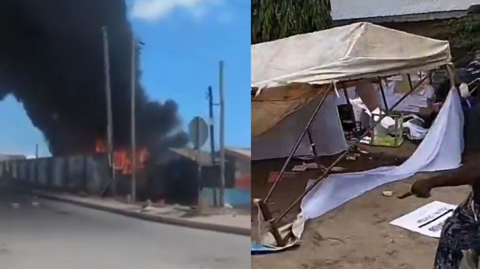 Reports indicate that polling centers were set ablaze in several areas, while at least one police vehicle was torched.