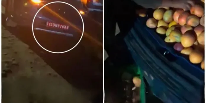The clip, shared widely on X, Facebook, TikTok, and Instagram starting around February 25, shows a black SUV with clear United Nations number plates parked under street lights. From the back, someone unloads crates of ripe mangoes, calling out to passersby like any roadside hawker.