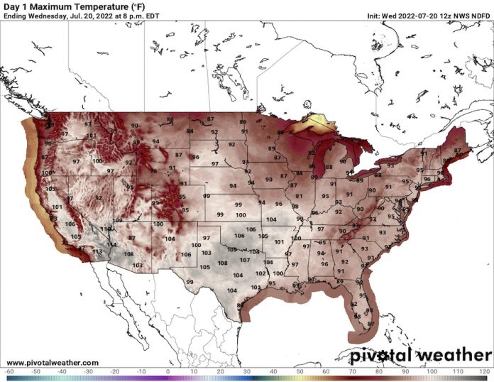 Extreme temperatures haunted two continents on Wednesday, with more than 100 million people in the United States facing excessive heat conditions and a heat wave that had scorched Western Europe taking aim at Central Europe.