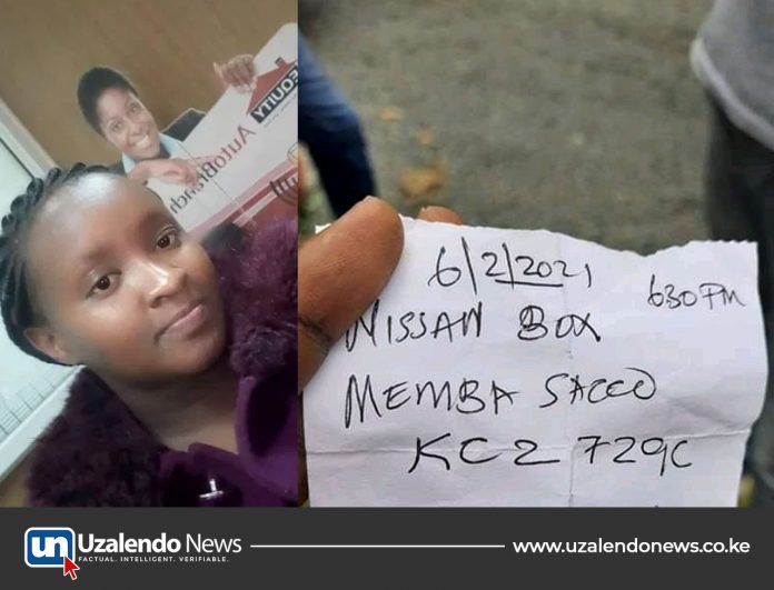 “On Saturday 6th February 2021 at around 6.30 pm, she was thrown out of a moving vehicle in Juja and passed on. The driver of MEMBA SACCO KCZ 729C should be arrested NOW!” the Murang’a Senator said.