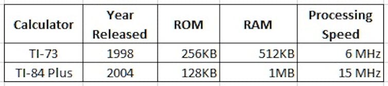 With regard to processing speed, the TI-73 was 140 times faster than the Apollo computer and the TI-84 was almost 350 times faster.
